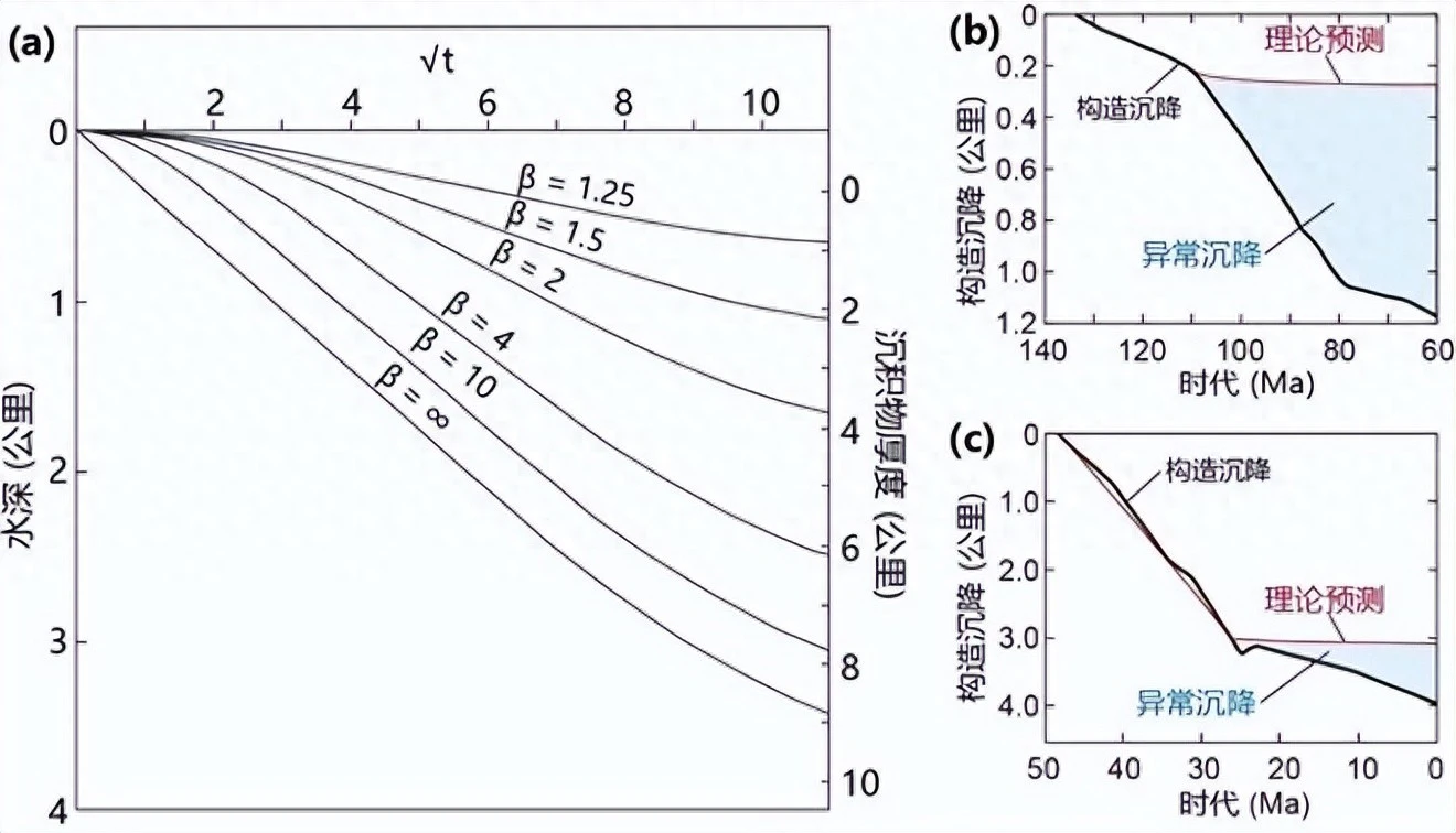 先是地壳被拉薄形成的“构造沉降”,然后是岩石圈冷却导致的“热沉降”。